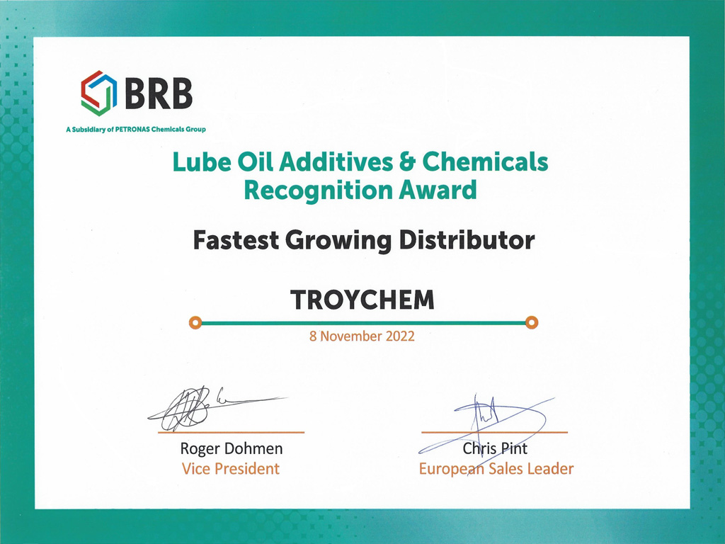 Troychem has attended to BRB Lubes and Additives & Chemicals Distributors Meeting during 7,8,9,10 November 2022 in Roermond, Netherlands and has been choosen “FASTEST GROWING DISTRIBUTOR”